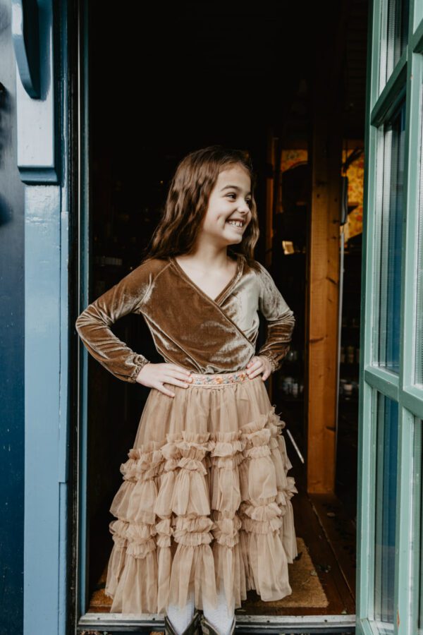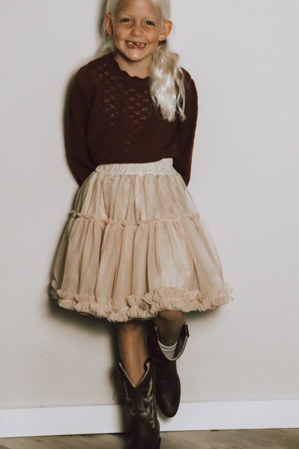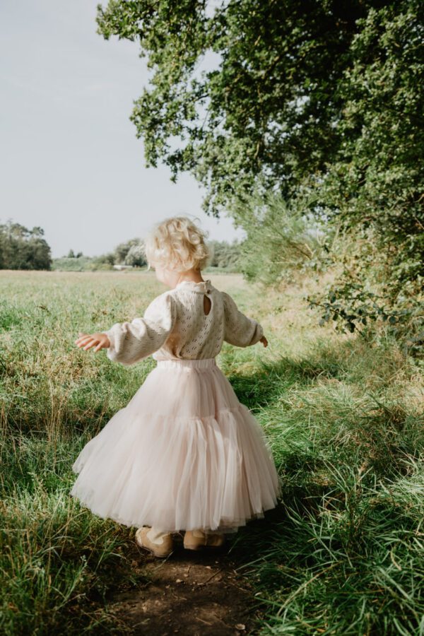 Een lief moment, vastgelegd tussen mij en een van de modellen. Mijn passie en liefde zitten in elke collectie, maar minstens zoveel liefde gaat uit naar de meiden die ze dragen. Vaak zijn het mijn nichtjes of de kinderen van dierbare vriendinnen. Tijdens de shoots draait het voor mij om meer dan alleen kleding verkopen. We proberen de meiden ook zelfvertrouwen mee te geven.