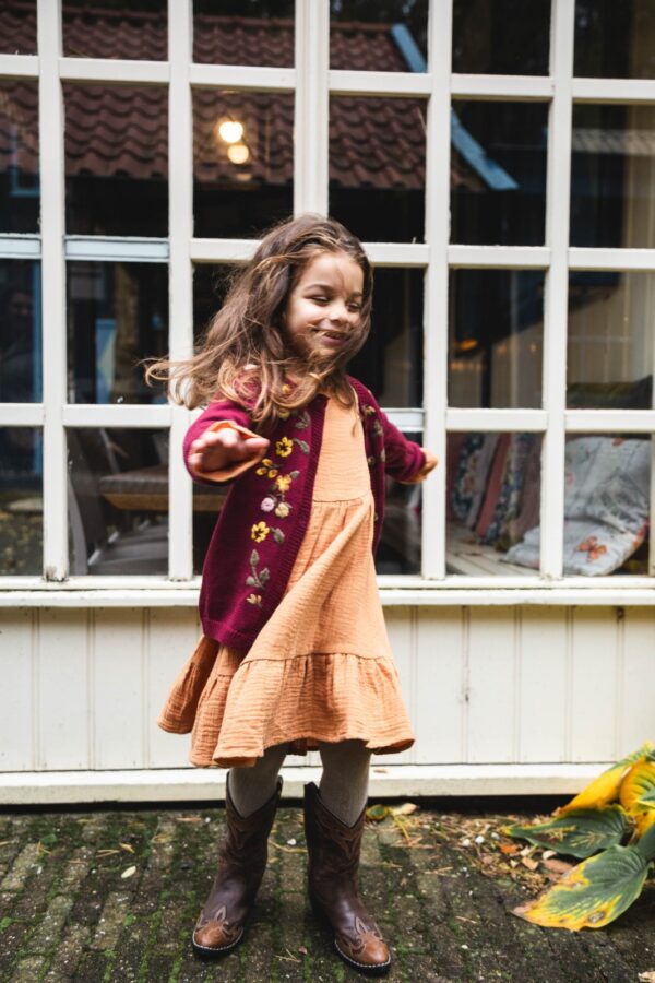 Een lief moment, vastgelegd tussen mij en een van de modellen. Mijn passie en liefde zitten in elke collectie, maar minstens zoveel liefde gaat uit naar de meiden die ze dragen. Vaak zijn het mijn nichtjes of de kinderen van dierbare vriendinnen. Tijdens de shoots draait het voor mij om meer dan alleen kleding verkopen. We proberen de meiden ook zelfvertrouwen mee te geven.
