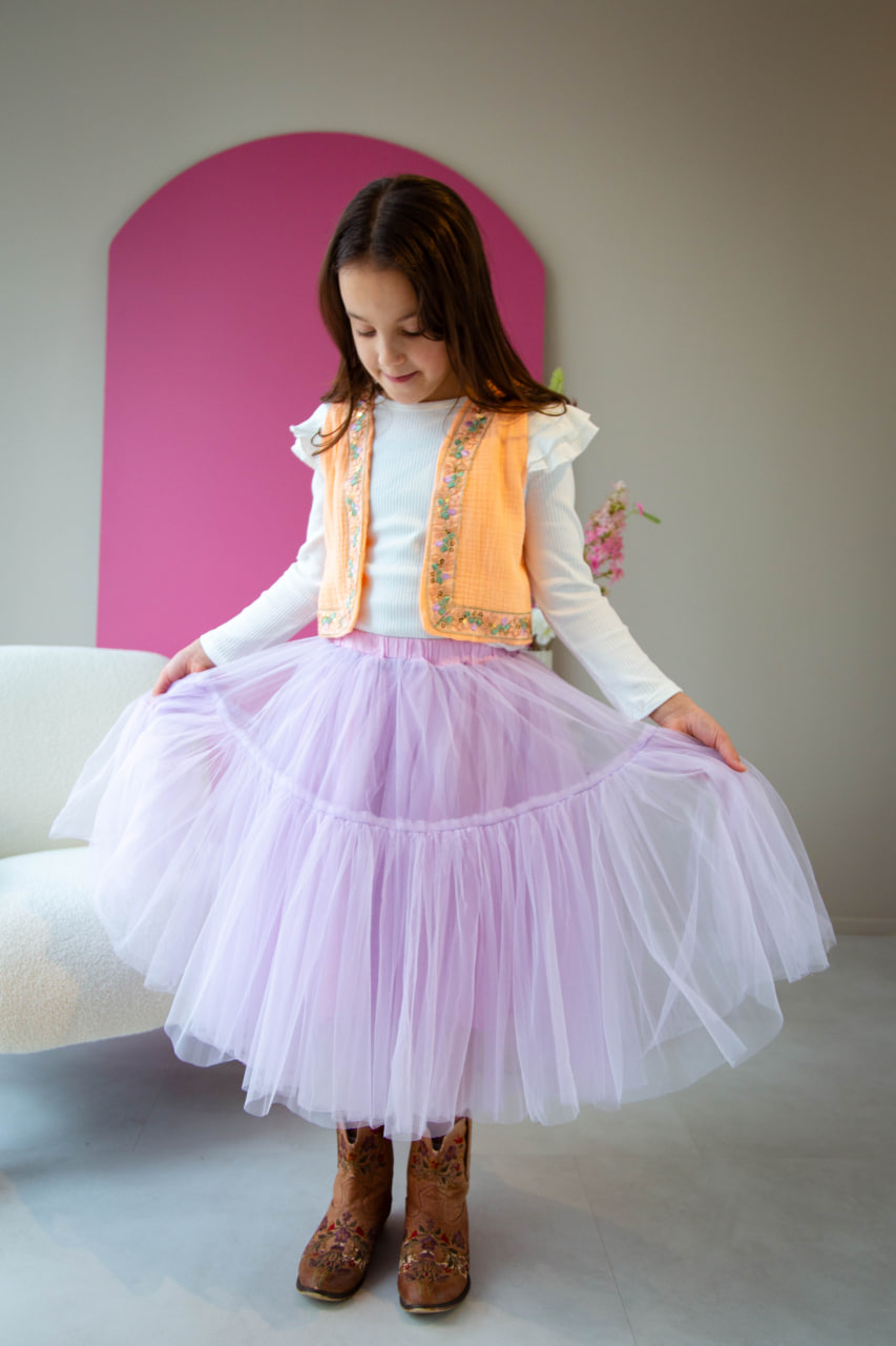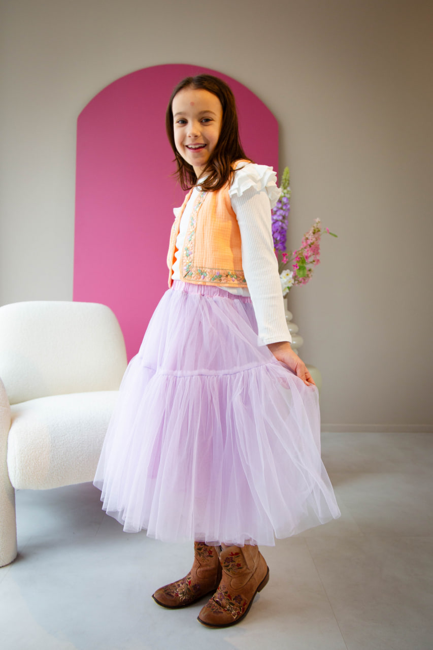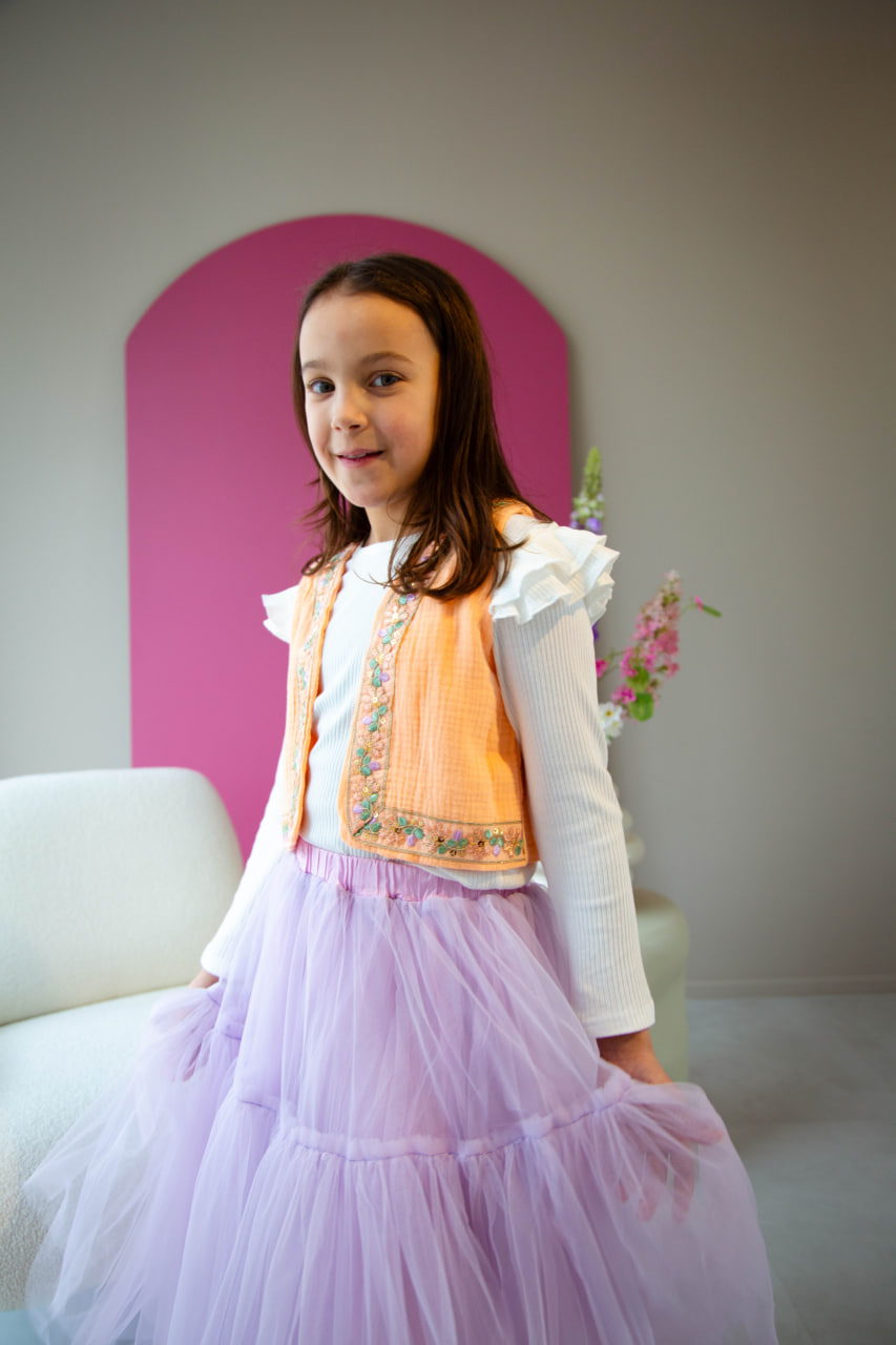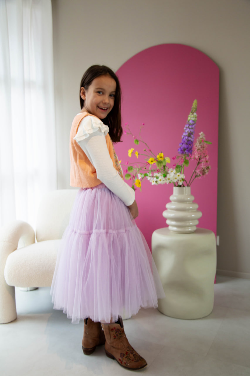 Ons model heeft maat 134/140 en draagt maat 134/140