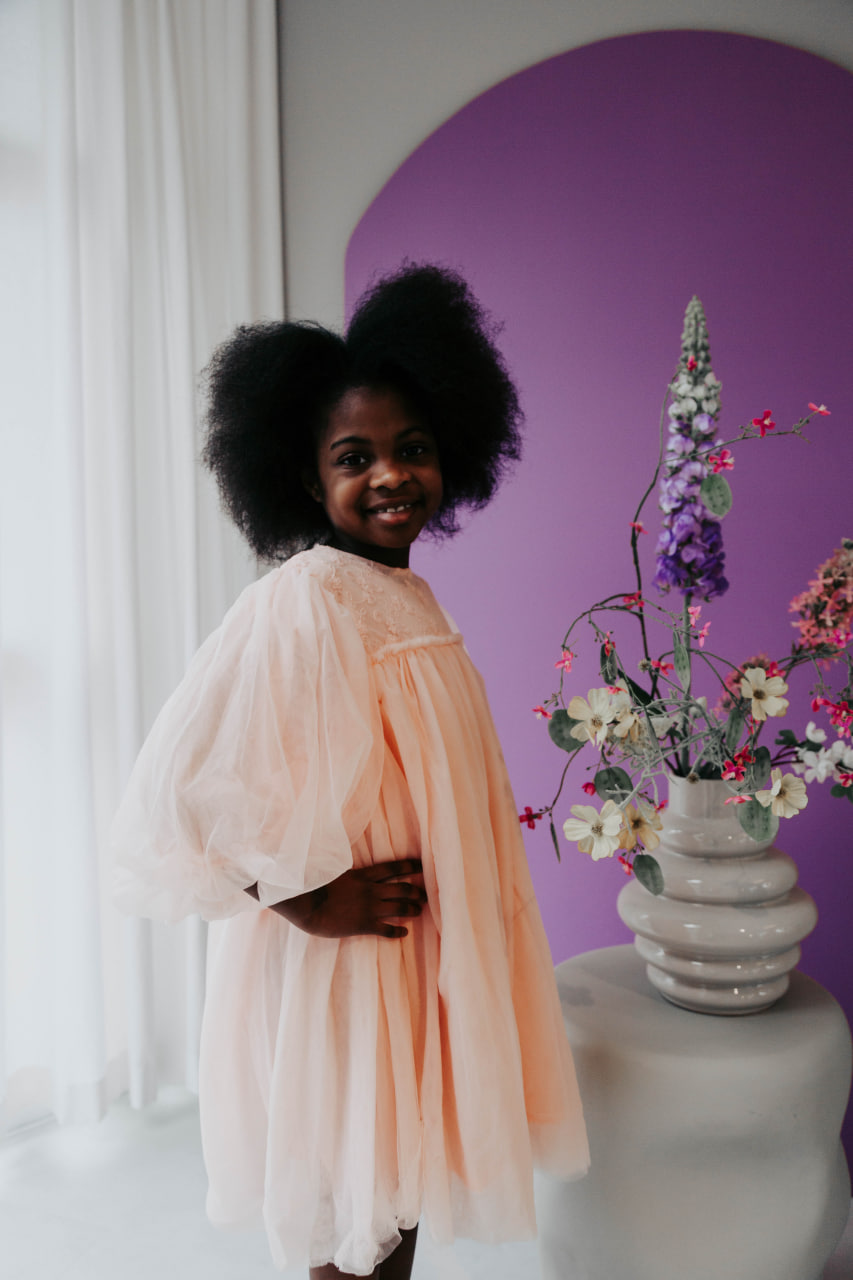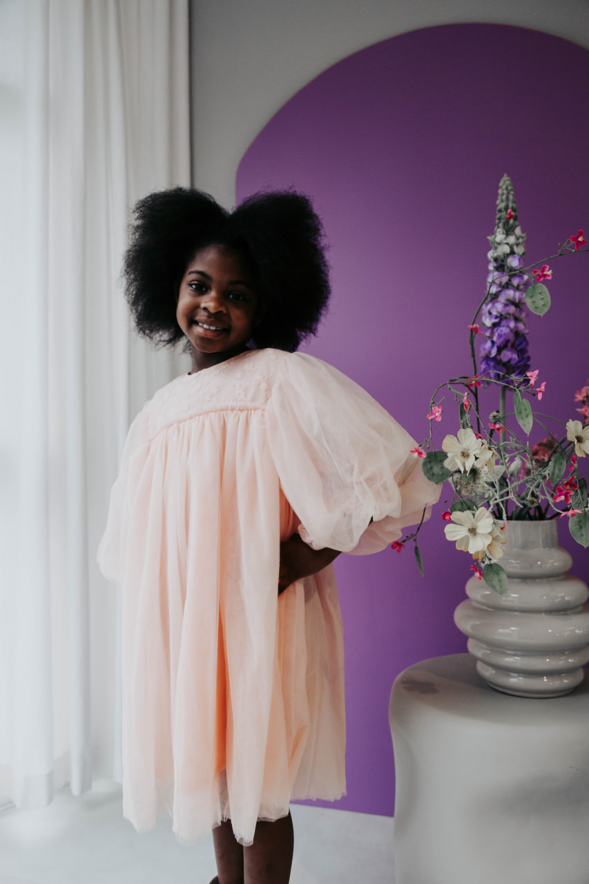 Samenstelling: Tule jurk buitenlaag, katoen binnenlaag.