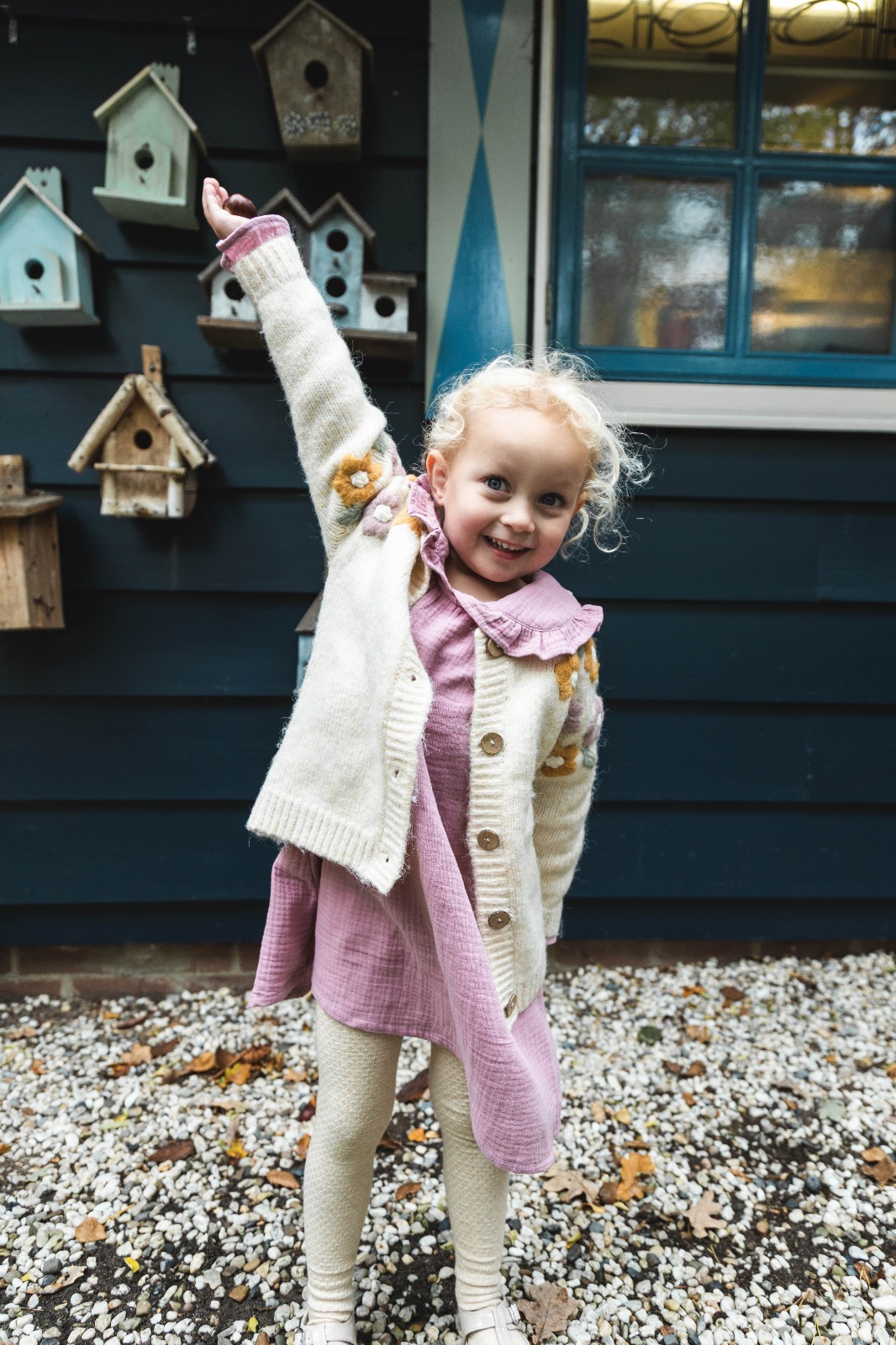 Ons model heeft maat 98/104 en draagt maat 86/92